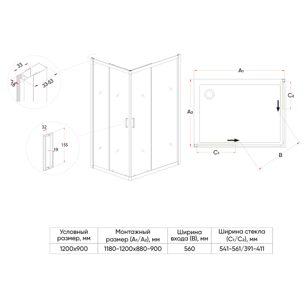 Душевой уголок Veconi Rovigo RV-14 120х90 профиль черный матовый, стекло прозрачное